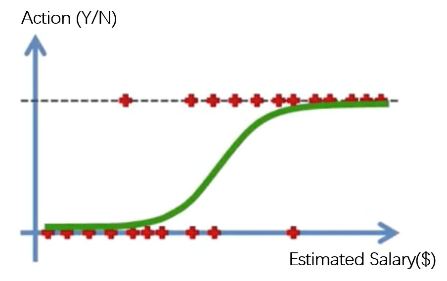 当然,即使能证明工龄是牵动工资水平上涨的原因,狗剩的这个模型仍然是十分朴素的。实际上,影响狗剩同事收入的相关因素可能还有很多,例如学历、业绩、周工时等等。因此,仅凭工龄就寻求准确地预测未来收入,显然是不尽合理的。更准确地,我们应当在狗剩构建的模型的基础上,引入对收入水平也具有解释能力的一个或多个自变量,共同解释狗剩同事的工资水平。这类具有超过一个自变量的线性回归模型,被称为多元线性回归。进一步地,狗剩在预测了自己未来十年的收入水平后,进行是否要继续留在这家公司工作的决策时,他的选择(因变量)只有两个:留(Y)/不留(N),而并非如工资水平这样的连续因变量有无限个值。一般地,对于因变量是二元变量的回归问题,则可以用逻辑回归模型进行分析(图2)。